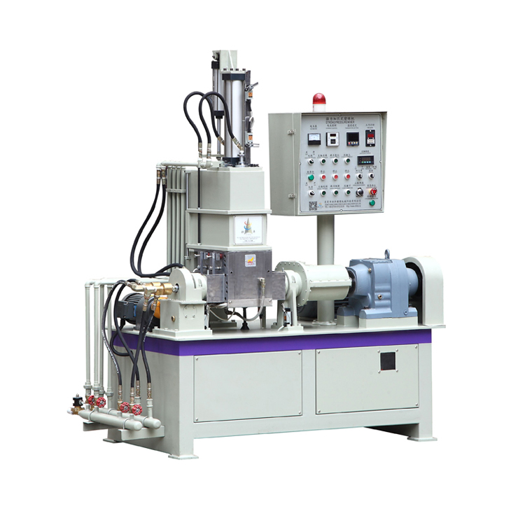 小型密煉機又叫密閉式煉膠機,主要用于橡膠的塑煉和混煉。密煉機是一種設有一對特定形狀并相對回轉的轉子、在可調溫度和壓力的密閉狀態下間隙性地對聚合物材料進行塑煉和混煉的機械,主要由密煉室、轉子、轉子密封裝置、加料壓料裝置、卸料裝置、傳動裝置及機座等部分組成。
